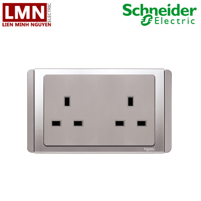 Bộ ổ cắm đôi 3 chấu dẹp 13A màu bạc ET3426_GS_G19 Neo Schneider