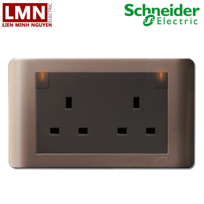 Bộ ổ cắm đôi 3 chấu 13A có công tắc 2 cực đèn báo kiểu anh màu đồng E84T25DN_SZ_G19 Zencelo Schneider