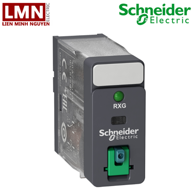 Relay trung gian RXG Schneider gồm cờ báo trạng thái tiếp điểm, nút nhấn thử tiếp điểm tự giữ, đèn LED báo trạng thái. Thích hợp làm relay trung gian cho ngõ ra PLC, giúp tiết kiệm không gian tủ.